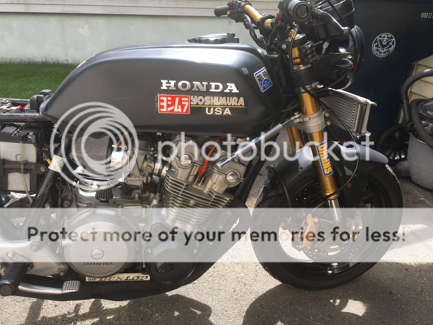 The old yoshi was beat up and tired. Went for an upgrade. Dennis Zickrick / Mark McGraw M3 racing stainless Steel replica of the 82 Freddy Spencer superbike 750F race pipe. Work of art