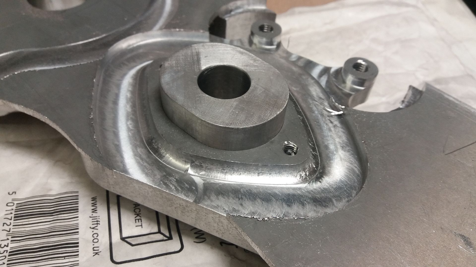 that'll let a socket through to tighten the engine bolt, the remaining aluminium is still thicker than the tube thickness it'll be welded to