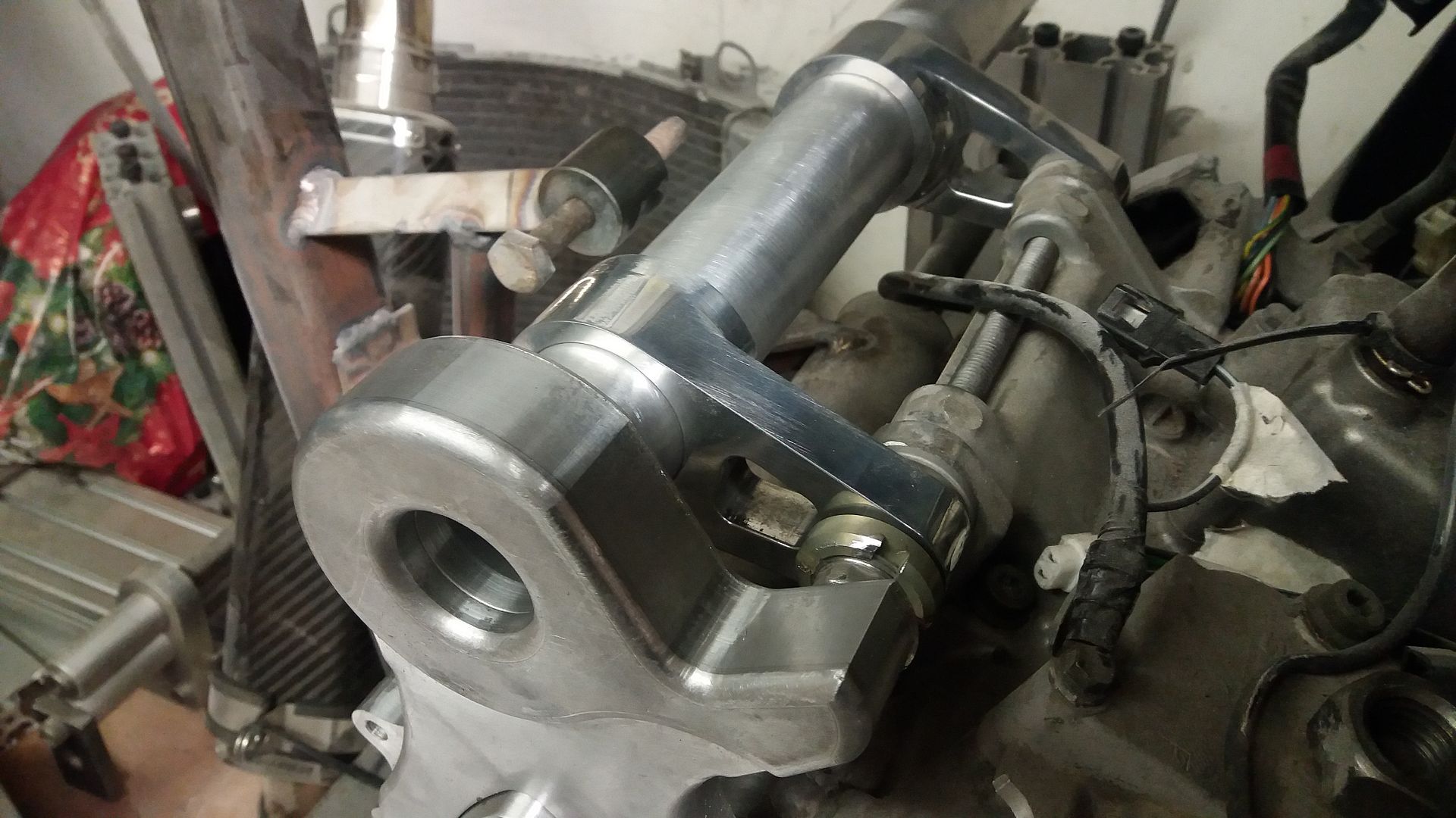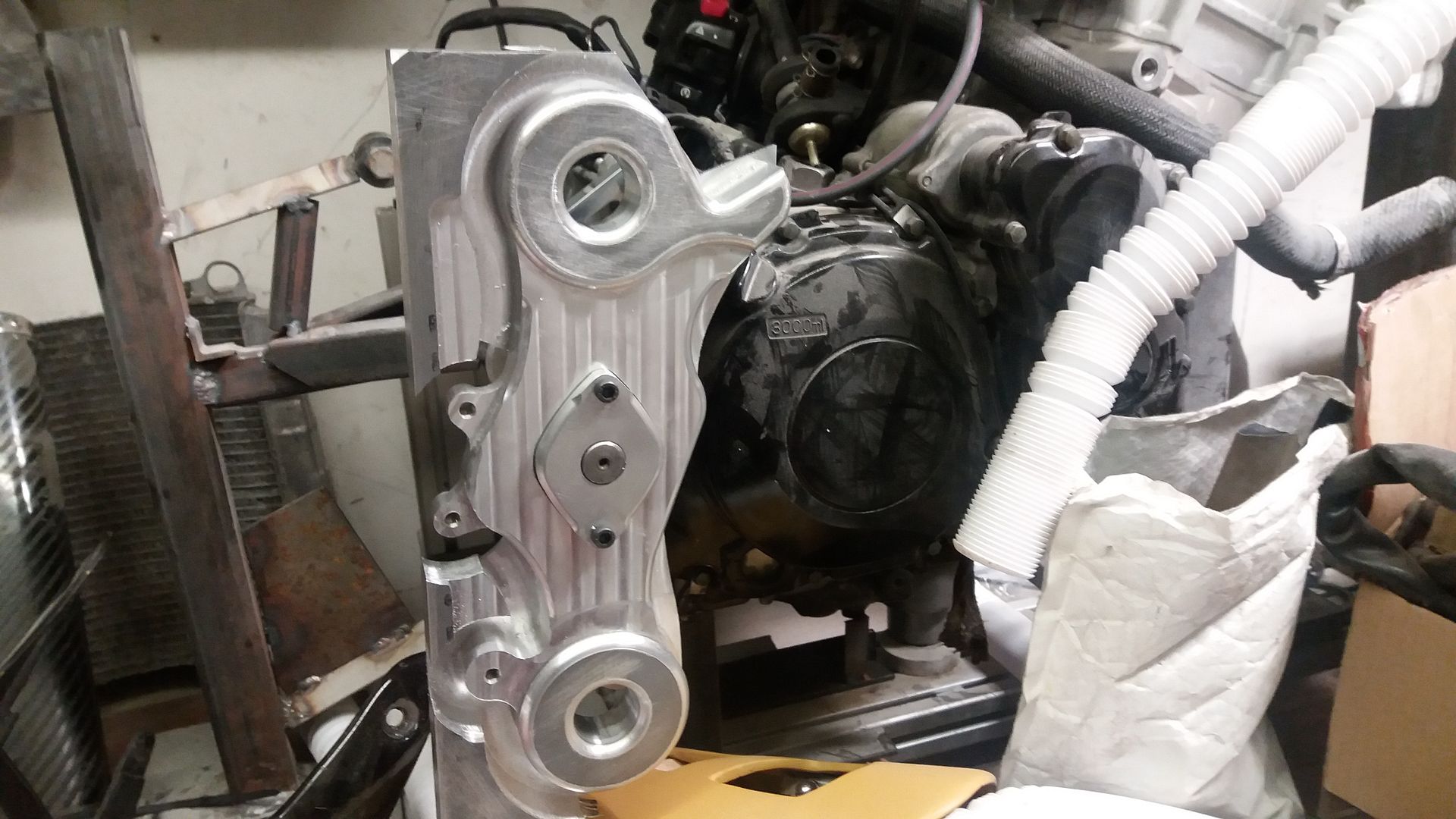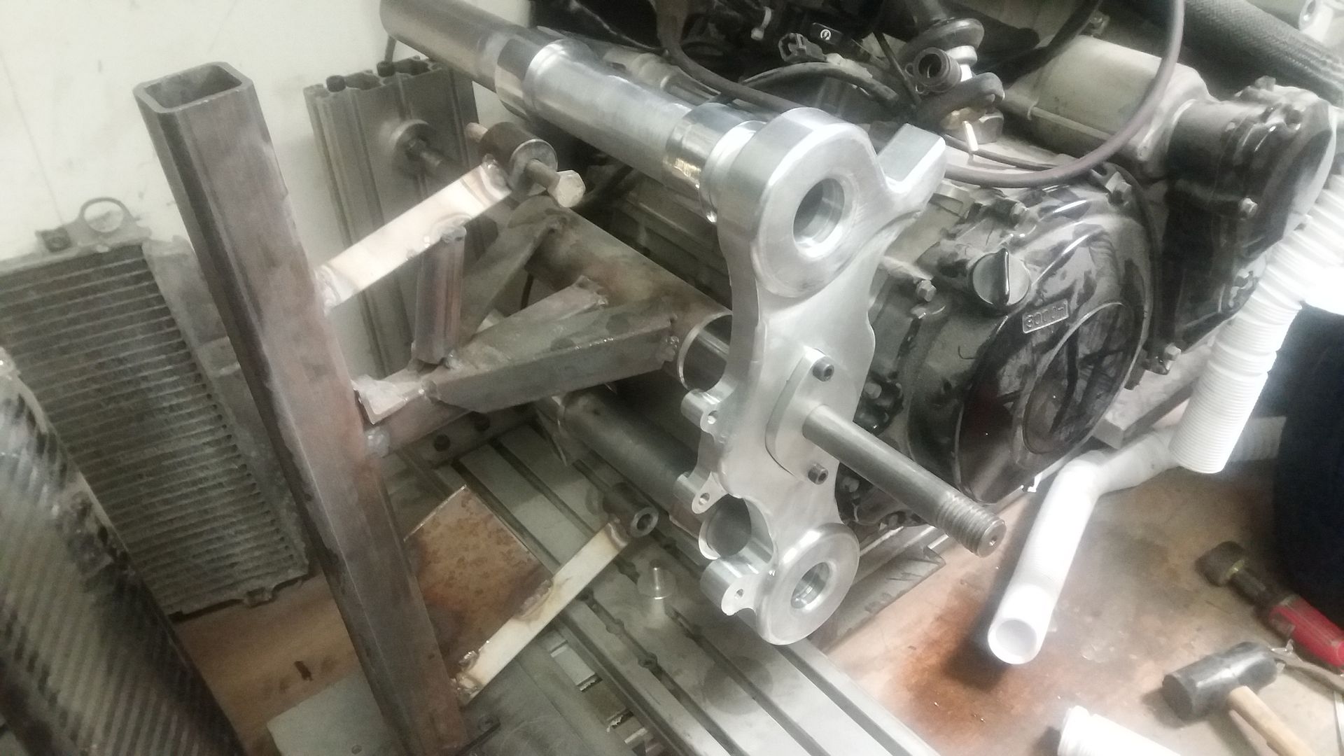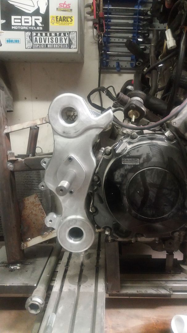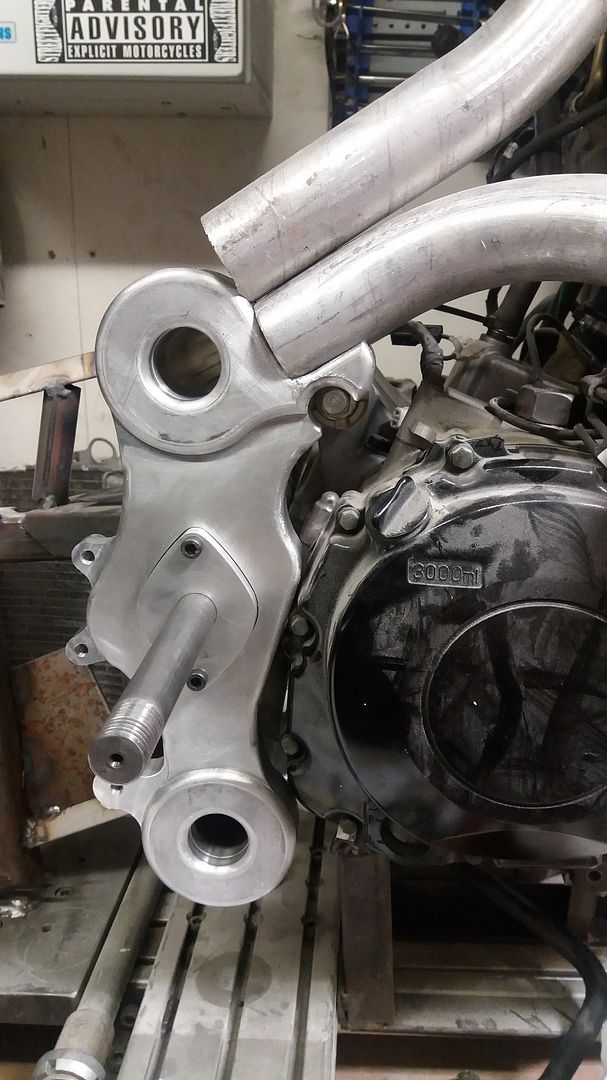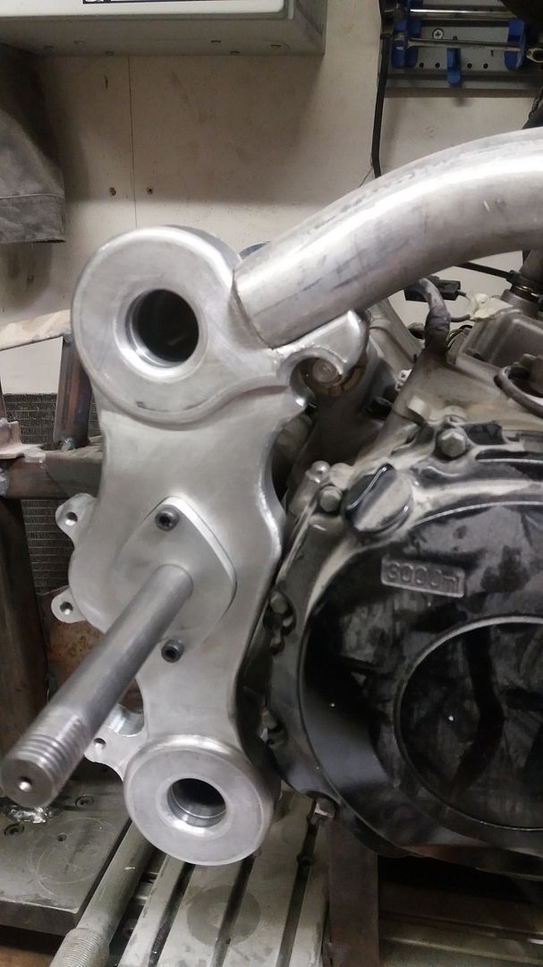 the inserts for the swingarm mounts can be removed and replaced raising or lowering the pivot point by 5mm either way, when combined with adjustable top shock mount, the adjustable dogbones and the adjustable offset yokes they will hopefully let me sort any handling issues